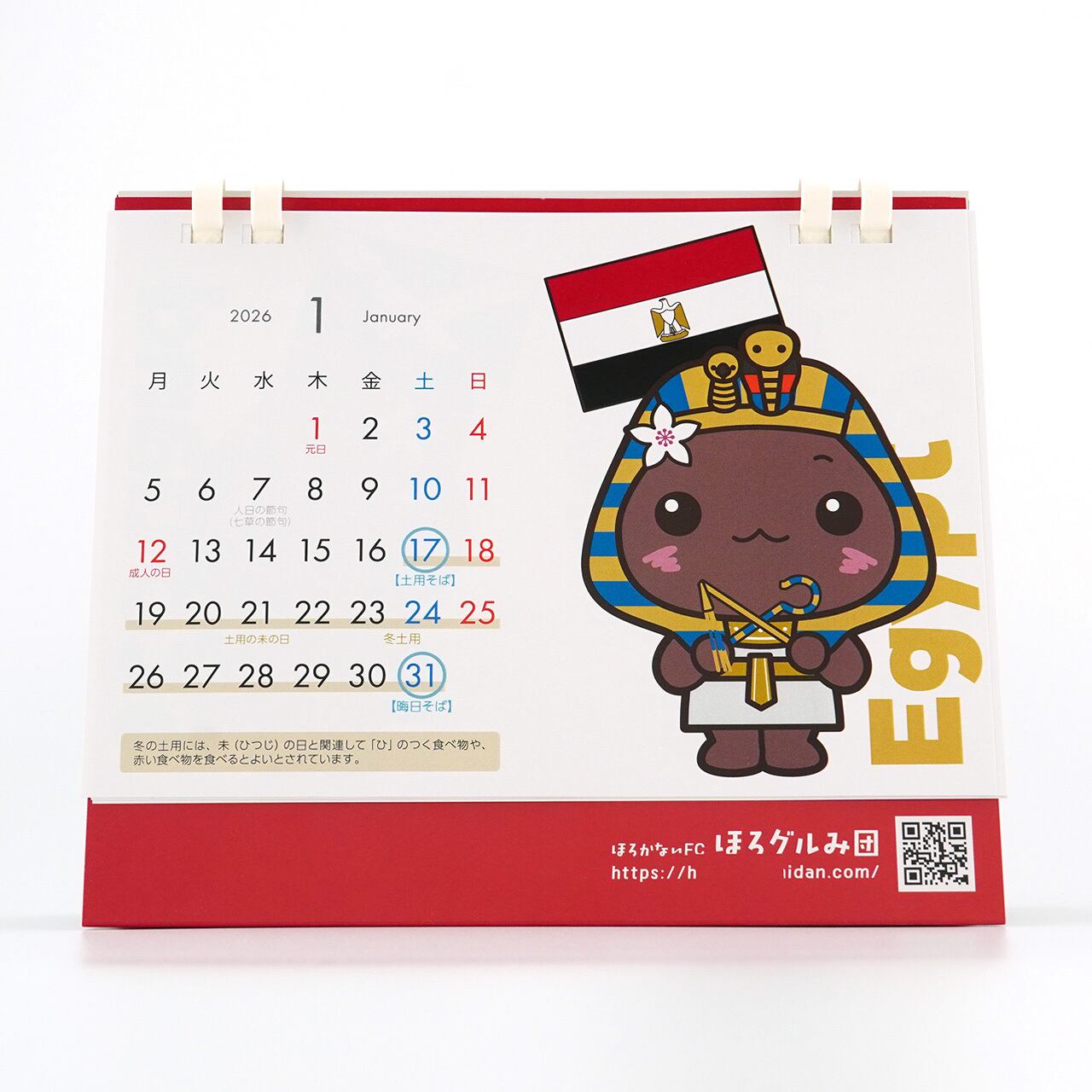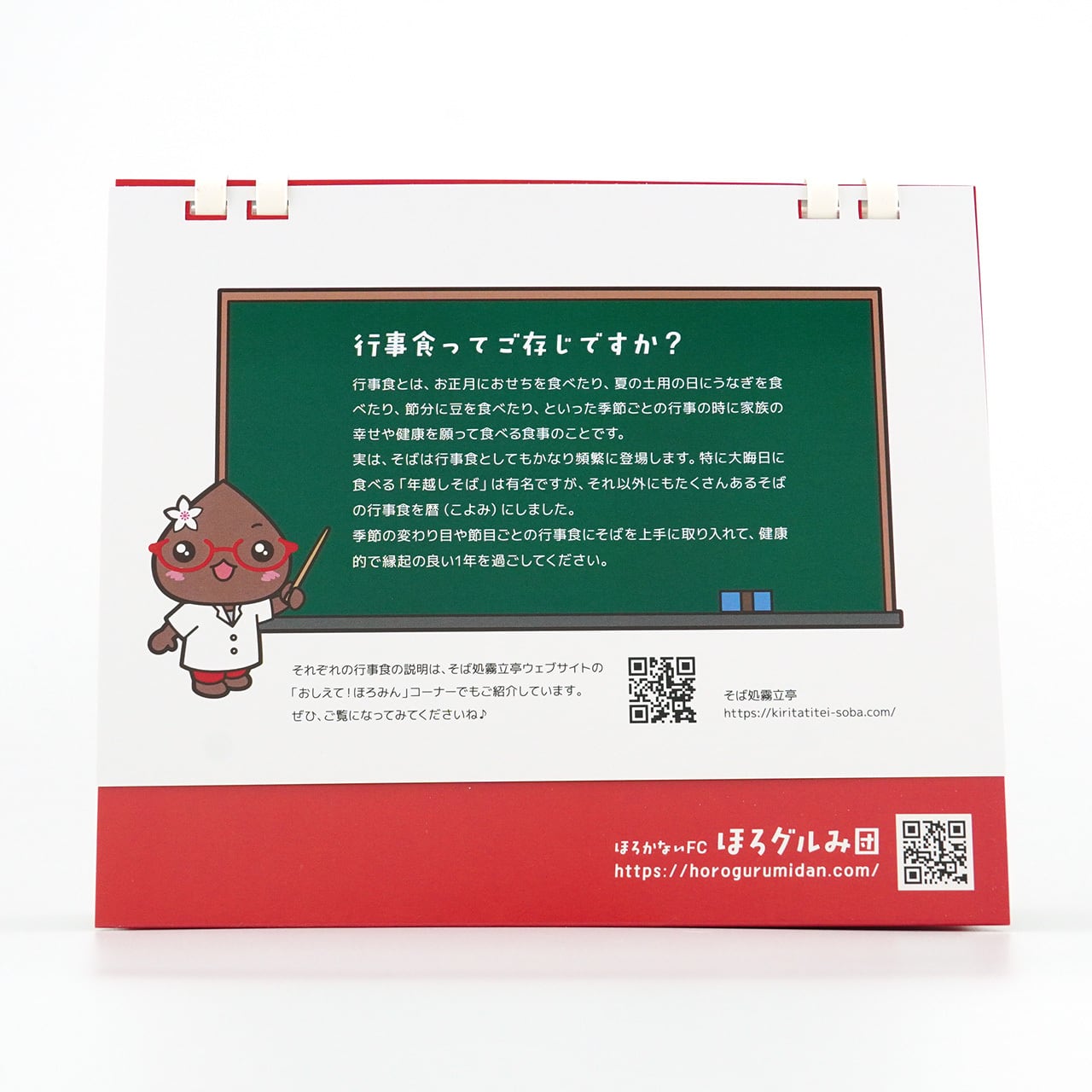 祝祭日に加えて、二十四節気や五節句、その他の雑節などのそばが行事食として登場する暦を記入してあります。