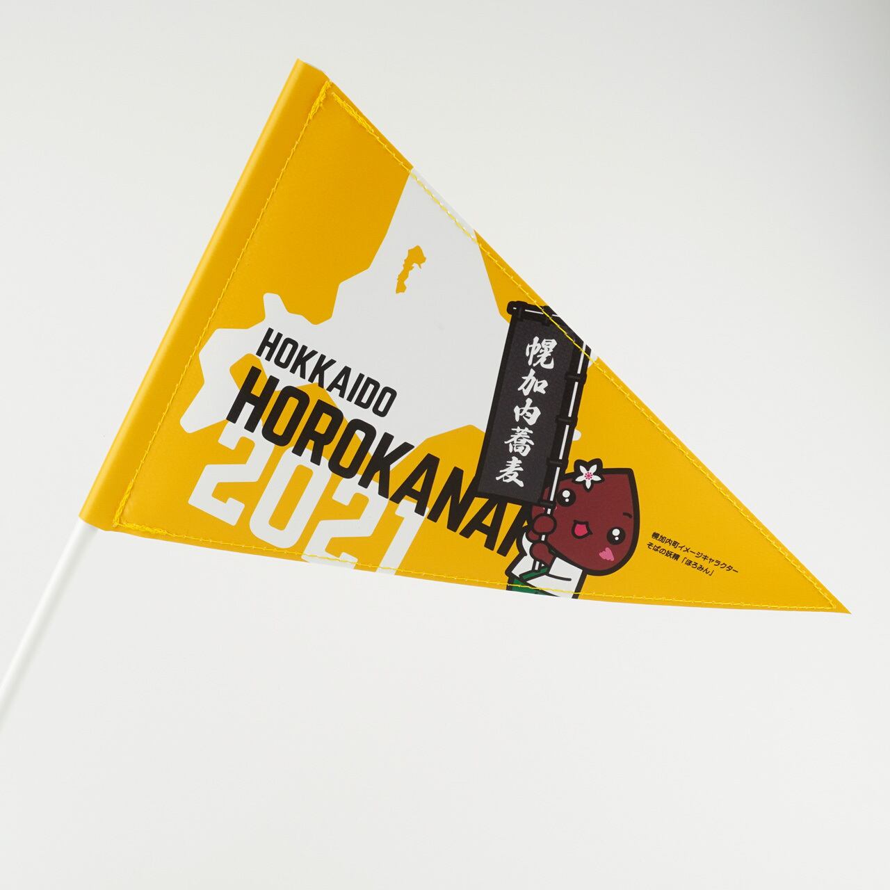幌加内を応援するフラッグです。 素材は横断幕やテントなどに使われる固めのターポリンという素材ですので、パタパタはためかすというよりは、飾る目的でのご利用がおすすめです。 ※10点以上の購入は事前にお問い合わせください。 - - - - - 【サイズ】 旗部 幅320mm×高さ200mm ポール部 430mm 塩ビパイプφ9mm 【旗部素材】 ターポリン(ビニール系素材) ※布製品のためサイズは多少変化します。あらかじめご了承ください。